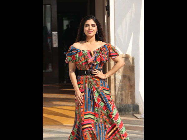 The prints on her dress were multi-hued and asymmetrically patterned. She teamed her ensemble with black-hued block heels, which colour-blocked her maxi dress. Bhumi wore delicate rings and earrings to notch up her gorgeous avatar. Her makeup was highlighted by a pink lip shade and soft kohl. The sleek tresses rounded out her look. We totally loved Bhumi's ensemble of the day. What about you? Feel free to share opinions in the comment section.