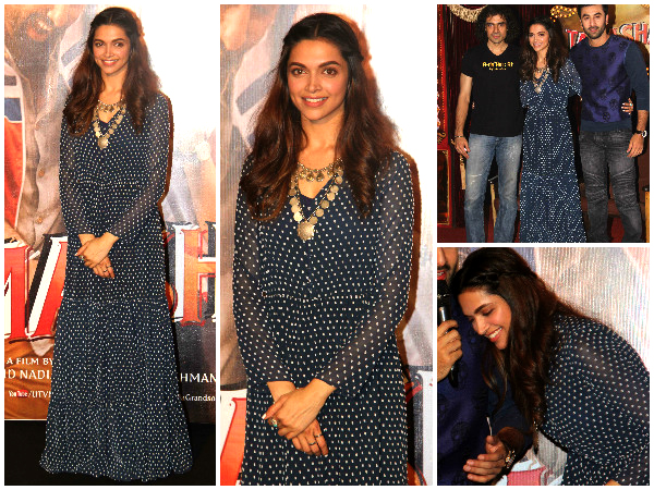 She arrived well in time for the event and was dressed to thrill. The deep blue chiffon, polka dot maxi gown was a perfect choice as it resembled the wardrobe she has in the film. The Yeh Jawaani Hai Deewani actress looked more like Mona Darling (her character in Tamasha) than Deepika Padukone and we loved it. The be-speckled dress was just what she needed to rock the night. Hats off to you, girl!