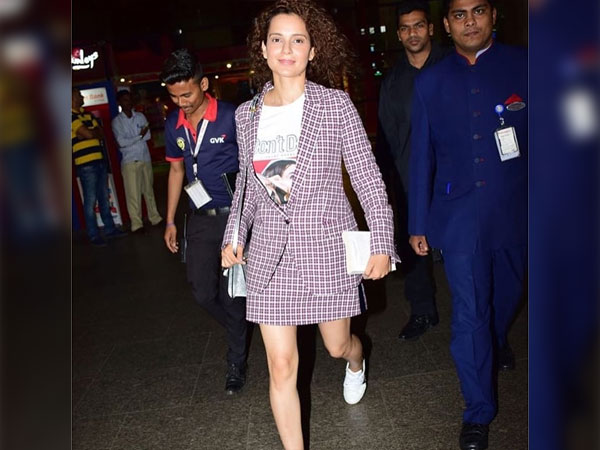 Kangana is back and flaunted her airport style yet again. She wore a very business-like matching jacket and skirt. She contrasted her purple and white chequered outfit with a white eccentric informal shirt. She accessorized her look with white sneakers and left her curls loose this time.