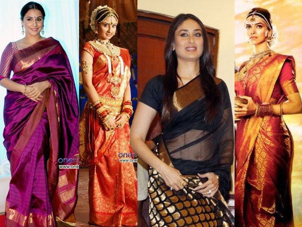 Even recent movie, Chennai Express is bringing forward the trend of wearing silk sarees. Many celebrities love silk sarees and we have spotted them in awesome sarees at the red carpet too! Few celebrities often seen in silk sarees are Rekha, Vidya Balan, Hema Malini, Deepika Padukone, Esha Deol, Konkona Sen Sharma, Rani Mukherjee and Kareena Kapoor to name a few.