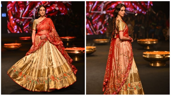 Keep reading to find out about Aditi Rao Hydari's traditional golden outfit at FDCI x Lakmé Fashion Week 2022: