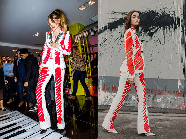 Posed against the backdrop of a graffiti wall in Berlin, Alia's look was more intense. She teamed her pantsuit with white-hued pointed pumps. Her look was jewellery-free and the makeup was highlighted by a deep red lip shade and well-defined kohl. The middle-parted sleek tresses completed her stylish look. Alia's look was more minimal as compared to Gigi's.