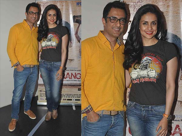 Moving back to the movies... At the event, Gul Panag was sporting an Iron Maiden tee, neatly tucked in skinny jeans. She paired the look with tan oxford shoes. Also, her hair were not the usual pixie cut but long mane left open. It was a simple look which anyone can reserve for the movie days. Not much required, innit?