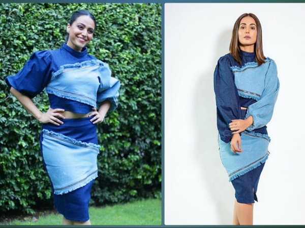 Ever since Hina Khan has entered the Bigg Boss house, she has been treating us with her gorgeous looks in different outfits. For her latest appearance, the actress opted for a denim-on-denim look and looked impressive. Flaunting dark and light denim separates, the actress won the Instagram with her stunning pictures.