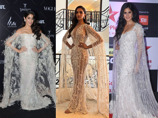 Katrina Kaif wore a Falguni and Shane Peacock gown yesterday for the Star Screen Awards. It was a beautiful number but it also reminded us of Janhvi Kapoor's ensemble at the Vogue Beauty Awards and Deepika Padukone's attire for Cannes this year. While the gowns weren't exactly similar but the feathery, sheer accents, cape, and the hue were a common feature. With their ensembles, these three divas are setting some unique trends.