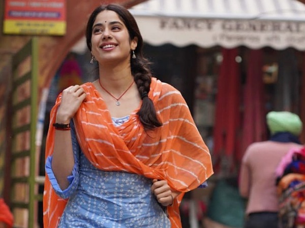 Bollywood actress Janhvi Kapoor has begun the shooting of her first film of 2021 titled Good Luck Jerry. Directed by Siddharth Sengupta and produced by Aanand L Rai, recently, the first look of the film was unveiled by the film makers that introduced us to Janhvi's character. In the picture, the actress was seen nailing the small town girl look in a printed blue salwar kameez and orange dupatta. The diva's simplicity and elegance absolutely touched our hearts. So, let us take a close look at her complete attire and decode it.