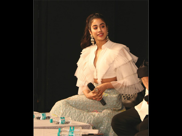 Over a period of months, we have observed that Janhvi loves wearing separates for events. And this time was no different as 'Dhadak' actress donned magical separates. Janhvi wore a ruffled top that featured a deep neckline and butterfly-like silhouette with layered sleeves. We absolutely loved her top and she paired it with an even more stunning skirt that was dipped in a light blue hue and elaborated with subtly embellished patchwork and colourful butterfly motifs. Janhvi's attire looked straight out of a fairytale.