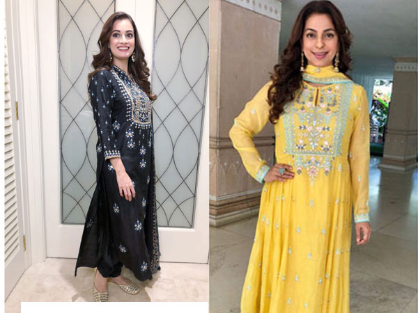 Juhi Chawla and Dia Mirza are stunning and they recently stunned us with their traditional numbers. They both wore anarkali suit and looked resplendent as ever. While Juhi wore a yellow-hued anarkali, Dia went for a black-coloured number. Their anarkalis were also designed by the same designer-Anita Dongre. We thought they looked amazing and it was hard to decide who looked better. So, we are decoding their looks for you and you can tell us which one was your favourite anarkali.
