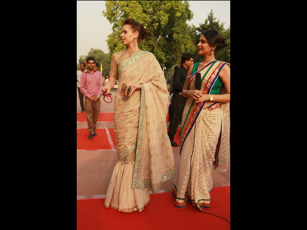 Kalki looked chic and classy. And boy, we loved the saree. Also, a perfect choice for an event like this. Kalki picked a light shade for the evening since it's Delhi and summer time.