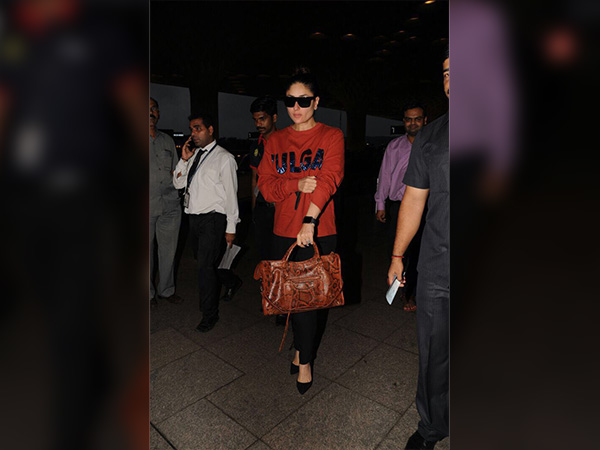 Kareena paired her cool travel attire with a pair of black pumps, rectangular shades and a tan coloured handbag.
