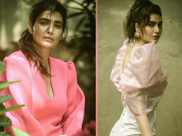 The Sanju actress wore a pink dress that came from Boutiquobysaachi. She was also styled by Saachi Vijaywargia. It was a pink ensemble with a deep neckline and puffed sleeves. Her dress was structured and perfect for formal occasions. Posed amid greenery, Karishma Tanna looked radiant as ever as she was all smiles for the camera. Her makeup was enhanced by light pink lip shade and contoured cheekbones. The eye makeup was light and the messy ponytail rounded out her avatar.