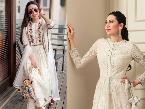 Bollywood actress, Karisma Kapoor has been inpiring us with her sartorial choices. With her Instagram feed, the actress has been updating us with a number of fashion trends. Recently, Karisma flaunted two sophisticated ivory ethnic attires elegantly. So, let's take a close look at her both outfits and decode her ensembles for weekend fashion inspiration.