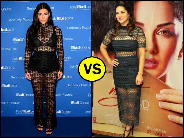 Its a pleasure to see your favourite celebrities wearing beautiful designer outfits, but to get an opportunity to catch your favourite stars in similiar outfits is a guilty pleasure like no other. This week we had the opportunity to compare reality star Kim Kardashian's outfit to our very own Sunny Leone.