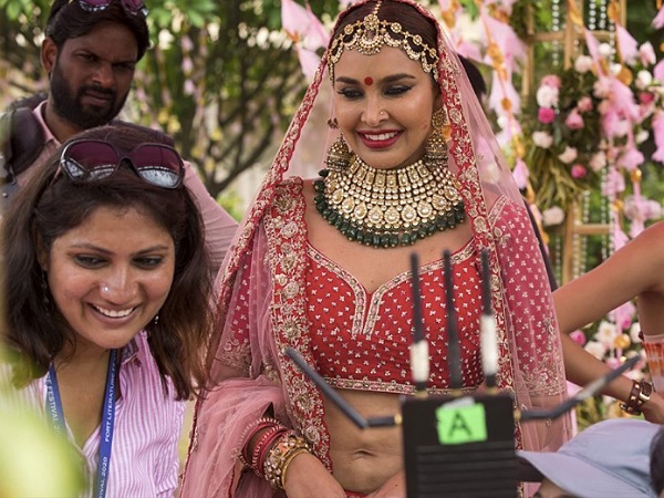 It was just a few days ago,when stylist Aastha Sharma shared a picture of Lisa Ray from the sets of Four More Shots Please!, where she was seen sporting a stunning white bridal ensemble by Gaurav Gupta. And now, recently, Aastha shared a couple of pictures of Lisa Ray (Samara Kapoor) in her another bridal avatar from the sets. Dressed in a beautiful bright pink embroidered lehenga, Lisa looked like a regal bride. So, let us take a close look at her bridal attire and decode it.