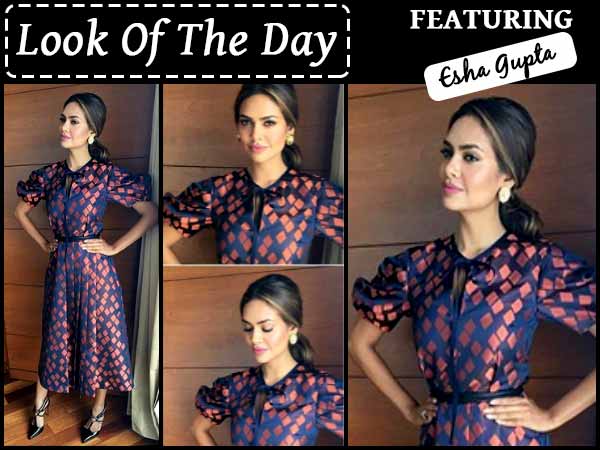 Esha was caught promoting the movie in this printed dress and boy, we have to talk more about it. The printed dress takes its inspiration from Retro era. Puffed sleeves, pleats and a tie-up neckline.
