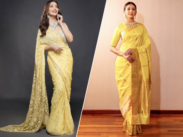 Makar Sankranti is an auspicious festival as it marks the end of the winter solstice. The festival is dedicated to the Sun God, Surya. Since the sun is worshipped on Makar Sankranti, yellow colour is considered significant. So, this Makar Sankranti, yellow should be your colour. If you are planning on wearing a yellow-hued outfit, how about you drape a sari. So, yellow sari on your mind? Let these Bollywood divas inspire you with their stunning yellow saris. From Madhuri Dixit Nene to Rakul Preet Singh, here are the actresses, who inspired us with their yellow saris recently.