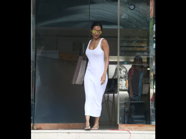 So, Malaika wore a white midi dress, which gave us Marilyn Monroe and Jackie Onassis vibes. It was a simple dress, which was sleeveless and structured. Malaika's dress was figure-hugging and she paired it with slippers. Now that was an unusual combination (a comfy one though) but Malaika pulled off this pairing like a piece of cake.