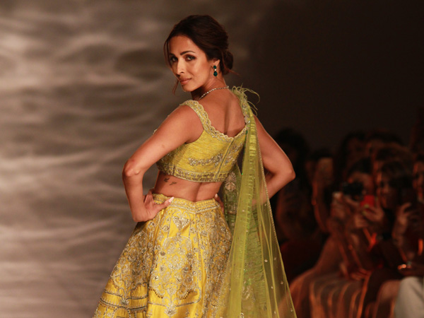 Malaika Arora looked a class apart as she sashayed down the ramp for designer, Sulakshana Monga at the FDCI India Couture Week 2019, presented by Hindustan Times. Beyond the traditional reds, her green lehenga was a refreshing piece and came from designer's latest collection, 'The Cultural Cascade'. The designer's inspiration behind the collection was Indian heritage and culture, and the 2019 collection was particularly a reflection of the ghats of Varanasi. Malaika's lehenga had a modern appeal but it was absolutely rooted in traditions.