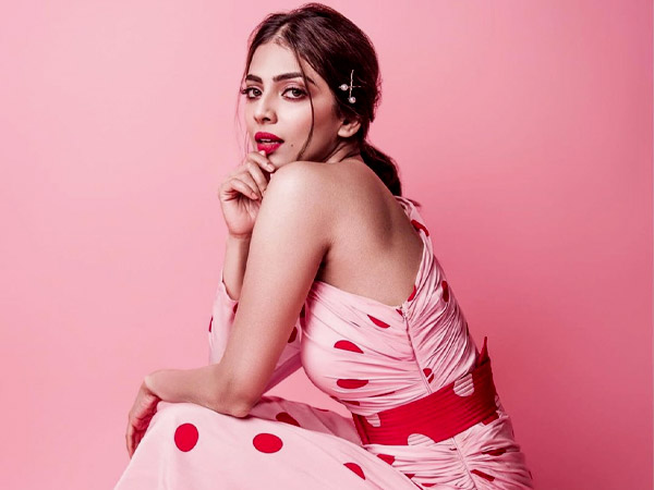 So, Malavika Mohanan looked extremely pretty in a one-shoulder light pink-hued midi dress by noted designer, Gauri & Nainika. Styled by Archa Mehta, her body-hugging dress featured red polka dots and pleats at one side. The red statement belt cinched her waist and added structure to her attire. The actress completed her look with a pair of ankle-length strapped white heels and ditched jewellery.