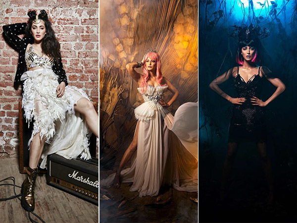 For Karthik Srinivasan's calendar, Shruti Haasan flaunted a black gothic dress against a hauntingly beautiful and smokey backdrop. Styled by Amritharam, her bold black dress came alive with lace and metallic details. It was also a beautifully embellished number and her attire also featured sheer details on the sleeves. Her nails were painted black and the makeup was highlighted by minty pink lip shade. The middle-parted black and pink tresses rounded out her avatar.
