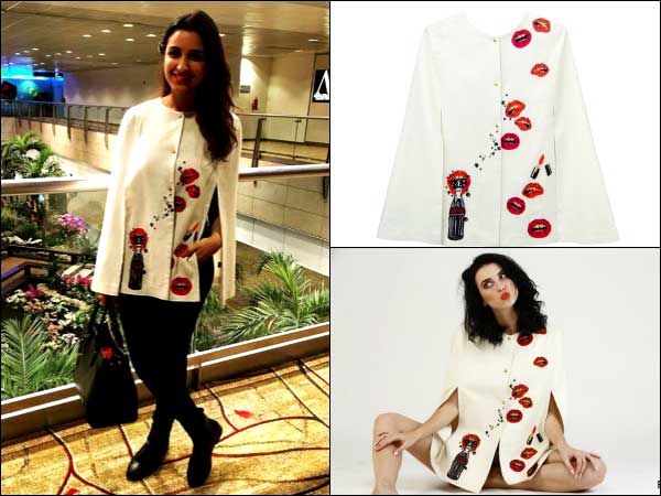 Recently, we spotted Parineeti Chopra wearing a chic white mouth cape by Shahin Mannan. The actress was boarding a flight to Australia. Parineeti combined the cape top with black leggings, black boots and a black handbag.