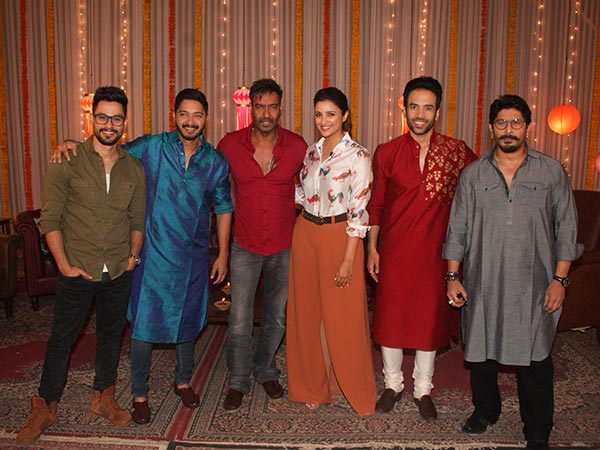 Everyone apart from Parineeti was dressed in traditional attires. Parineeti had turned on her classy Western attire, trying to be 'hatke' from the other co-actors including Ajay Devgn, Tushaar Kapoor and Arshad Warsi.