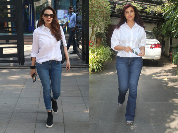 Preity Zinta and Parineeti Chopra were papped on the streets of Mumbai. Both actresses were seen sporting a classic combination. They would have most definitely twinned had they walked together. According to us, both looked awesome in their respective outfits.