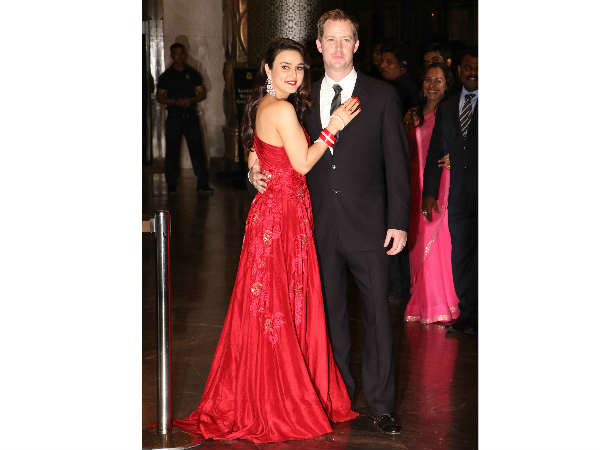 There was a lot happening with some of the most popular celebs in town showing up at the bash. Preity looked graceful and happy dressed in a red Manish Malhotra gown, with a fit and flow look and a one-shoulder style. Preity had wavy side swept hair with striking diamond ear rings and hubby Gene complemented her look with in a 4 piece tuxedo.