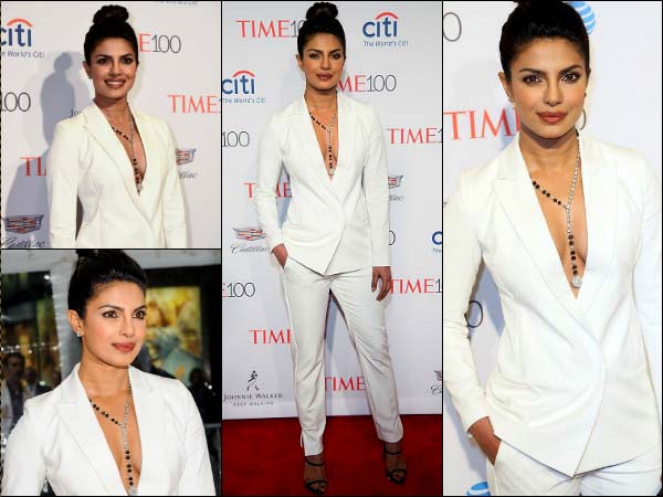 Pee Cee was spotted at the #Time100 party held in New York recently, and she was a stunner. Priyanka opted for power dressing on the red carpet, wearing a white pantsuit and it worked like magic. The tapered trousers were from Olcay Gulsen and the blazer from St. Studio.