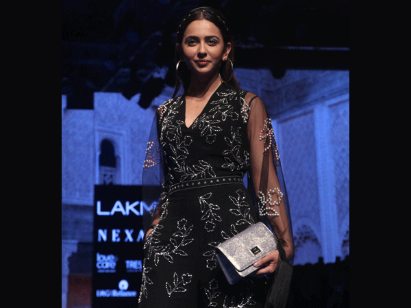 Rakul Preet Singh also sashayed down the ramp on the day three of the ongoing Lakme Fashion Week Winter Festive 2019. The De De Pyaar De actress walked down the ramp for Nachiket Barve, who presented his collection in collaboration with Caprese Girl. Rakul Preet looked amazing in her jumpsuit ensemble and gave us major retro vibes.