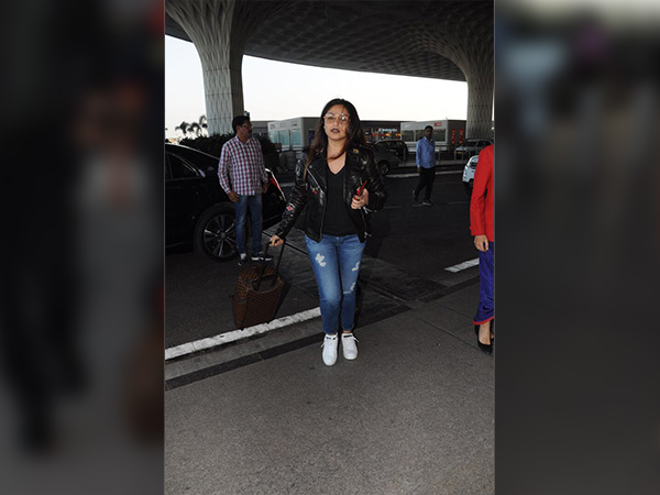 Rani Mukherji was spotted at the airport in Mumbai, looking too cool in her casuals. She was wearing a black patched leather jacket with a v-neck black tee and blue shaded ripped jeans.