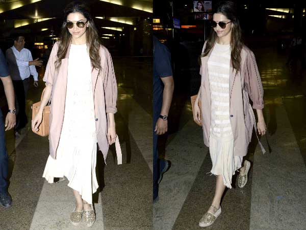 Anyhow, the duo look gorgeous. What we liked most in Deepika outfit is her golden sequin shoes. She wore a cream-ish cotton dress paired with a long coat.