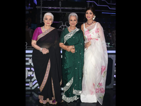 Shilpa Shetty Kundra looked beautiful in her sari, which she wore for the special episode of her dance reality show, Super Dancer 3. The show was graced by veteran actresses, Waheeda Rehman and Asha Parekh. Shilpa's sari for the occasion was not one of her contemporary ones but this time, she went for a vintage number. Her attire of the night came from the label, Picchika by Urvashi Sethi.