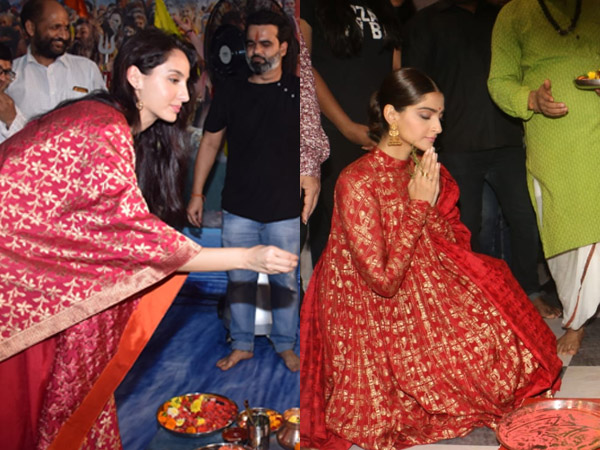 Just a few days ago, The Zoya Factor actress, Sonam Kapoor Ahuja gave us a temple-wear goal with her pretty red traditional attire and now, the Dilbar song fame, Nora Fatehi was seen recently playing with red colour at Ganpati celebrations. We loved how Nora and Sonam flaunted their respective red-hued ethnic attires. So, let's take a close look at their outfits and find out who carried it better.