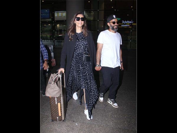 Sonam Kapoor Ahuja was spotted today at the airport with her husband, Anand Ahuja, and the fashionista left us surprised once again. She wore a dress and looked extremely stylish. Well, you can expect Sonam Kapoor to always leave us speechless. Let's decode her attire and airport look of the day.
