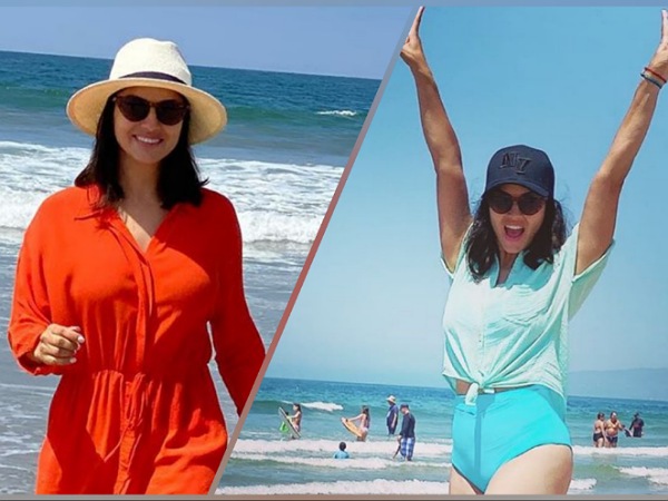While we all are stuck at our home, living the boring quarantine life, it's Bollywood actress-model Sunny Leone, who is having a great time with her husband and kids at California. The diva has been sharing pictures on her Instagram feed from her beach life and making all of us jealous. In the pictures, Sunny was seen not just having a fun time with her family but also flaunting her chic beach-perfect outfits. So, let us take a close look at her both the outfits and take some goals from the fashionista.