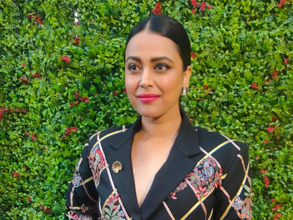 Her jewellery game was minimal but striking. The Flesh actress accessorised her look with an enameled leaf pin adorning the lapel and art-deco inlay earrings, which came from the label, Azga Fine Artistry. The makeup was highlighted by vibrant pink lip shade, subtle smoky eye shadow, and contoured cheekbones. The middle-parted sleek ponytail completed her look. We absolutely loved this look of Swara Bhasker's. What about you? Let us know that.