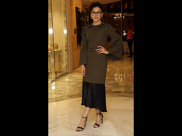 Taapsee Pannu's style sense is characteristic and a class apart. She might wear the usual dresses and pants but her outfits are accentuated by the quirky quotient. She wore a muted-toned midi dress this time and totally aced the formal look. Taapsee looked gorgeous and we thought, her latest attire was a bit towards the anti-trend side. Let's decode her outfit and look.