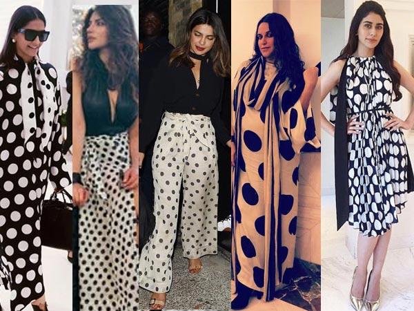 White and black polka-dotted pattern is ruling the Hindi film industry. These quirky retro prints seem to have made a comeback in a huge way. From Sonam Kapoor-Ahuja to the recently-engaged Priyanka Chopra, we have noticed so many divas wearing the polka-dotted numbers. Now their attires are contemporary, but white and black polka-dots are the oldest and the commonest patterns ever.
