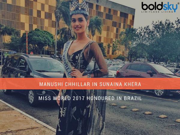 Manushi recently donned a Sunaina Khera creation at the Brazilian Parliament, where she was praised for her menstrual hygiene project in India.