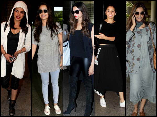 Travel wardrobe is a part and parcel of Bollywood celebrities and there is no way we are going to miss covering these for you. Today's nominees are Deepika Padukone, Priyanka Chopra, Shraddha Kapoor, Anushka Sharma and Sonam Kapoor.