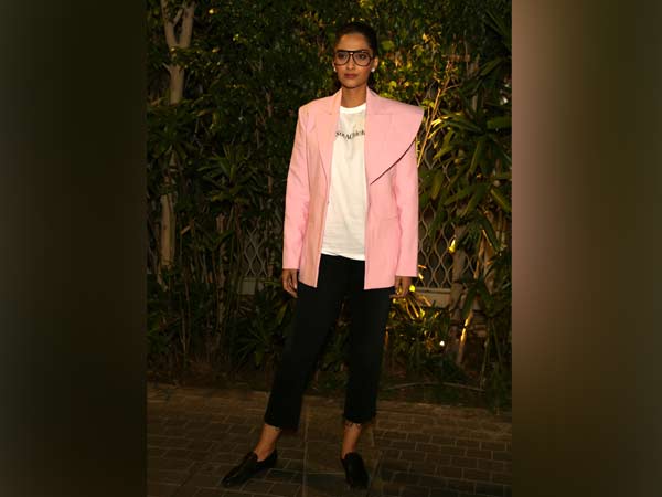 The 'Padman' actress was bubbling with joy, as she met her fans during the screening of 'Veere Di Wedding' in Delhi. She was dressed to nines and looked amazing in her casual outfit. The starlet again unleashed her inner nerd with a soft pink blazer by George Keburia from his Fall 2018 collection and she paired it with black pants.