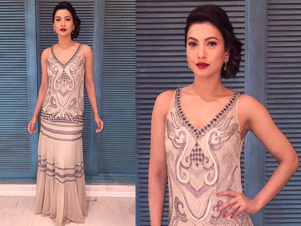 Gauhar finished off the look with a twisted hairbun and red lipstick.