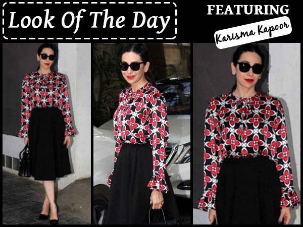 For the lunch, Karisma picked a chic and comfy outfit. A printed high-neck shirt with flared sleeves tucked neatly into a high-waisted black skirt. Now, as much as we like this coordinated outfit, we cannot help but notice the Christmas appeal of this lookbook.