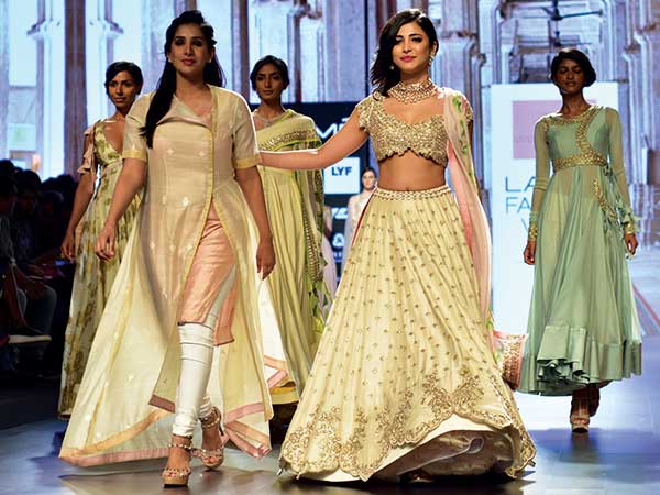 Shruti Hasaan walked the ramp for Anushree Reddy's new summer line, 'Mughal India'. Looking fabulous in an ethnic number, Shruti swept the audience off their feet with her smile and beauty.