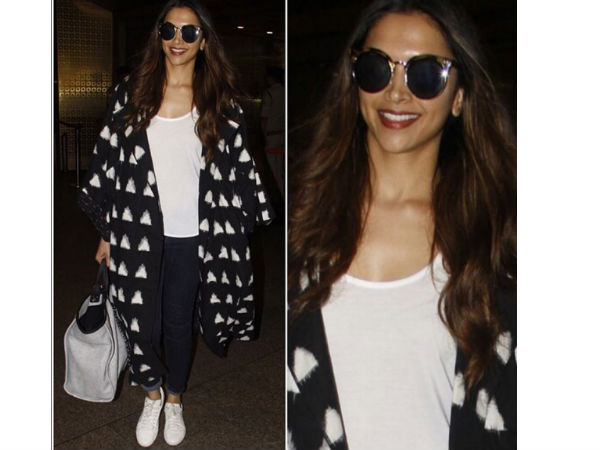 Deepika wore jeans basics. A white top and blue skinnies. To amp up the look, she added a Nor Black Nor White oversized printed coat. She finished the look with white sneakers and her trademark Chanel handbag,
