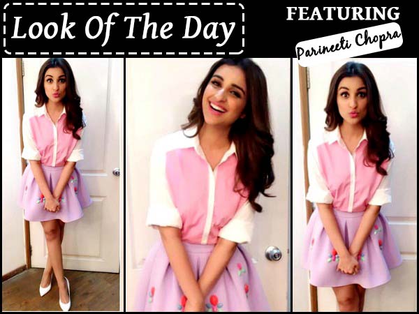 Since then she has come a long way and has improved a great deal. During BFG promotions, Parineeti chose to wear a chic Zara shirt. She paired the upbeat top with a cutesy blush purple skirt from the label ASOS. The skirt has little embellishments.