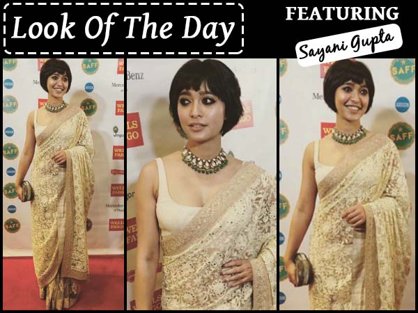 And the Look Of The Day goes to Sayani Gupta for flaunting a beautiful white Sabyasachi saree like it's n o big deal.