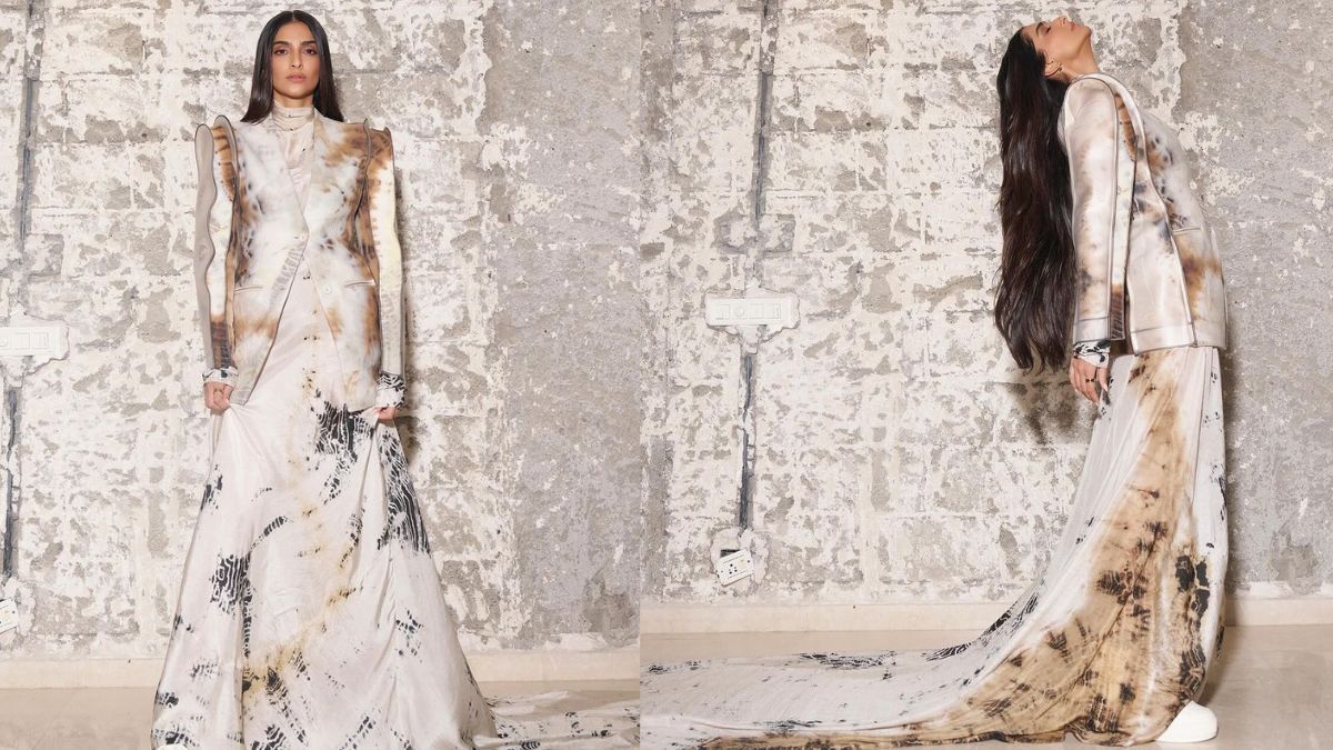 The flowy silhouette gave the ensemble a contemporary touch, while the modest neckline and long sleeves radiated a timeless appeal. A structured jacket worn over Sonam's gown adds strong shoulders and a level of elegance to the look. Only a style veteran like Sonam can effortlessly pull off this well-balanced yet striking monochromatic ensemble!