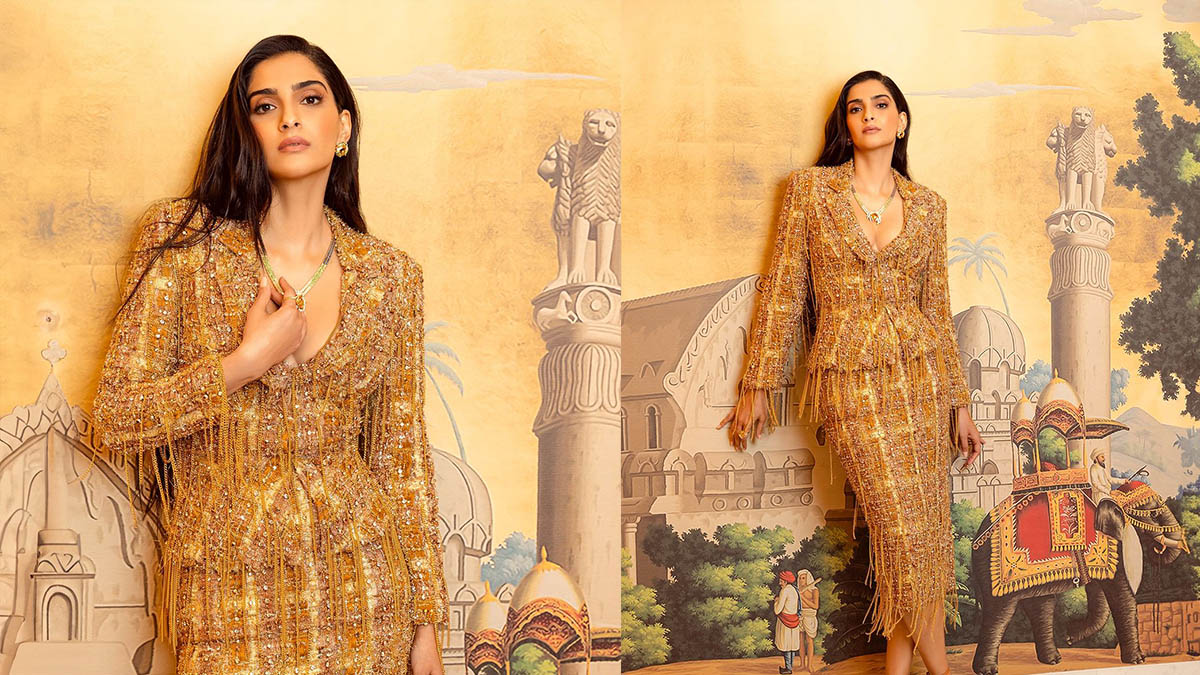 Sonam Kapoor’s Metallic Gold Skirt Suit Defines Grace and Glamour – Take Couture Fashion Notes!